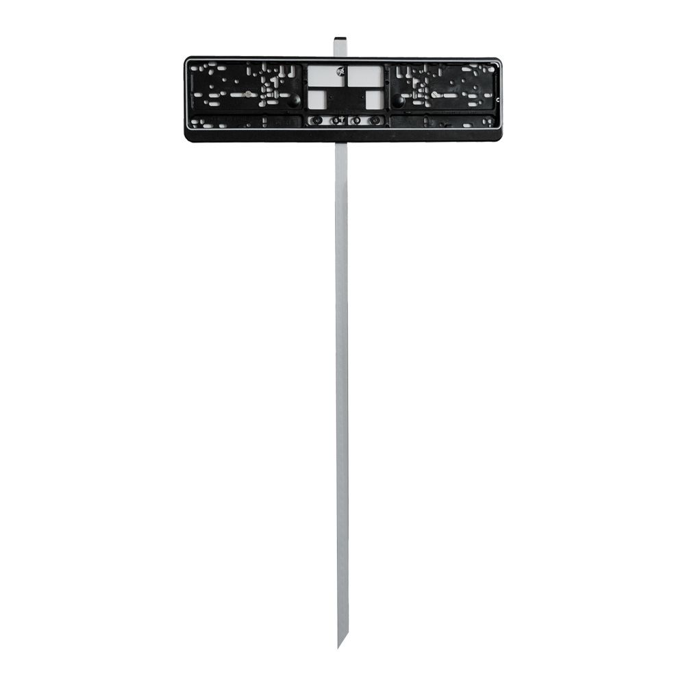 Der Einschlagpfosten ist aus stabilem Aluminium gefertigt, hat eine Höhe von 100 cm und ist oben mit einer schwarzen Abdeckkappe zum Schutz vor Wasser versehen. Zum leichteren Einschlagen in das Erdreich ist der Erdspieß unten angeschrägt. Zudem ist der Einschlagpfosten aus leichtem Aluminium gefertigt und von innen hohl, so dass er ein möglichst geringes Gewicht aufweist. Die 4 mm starke Aluverbundplatte überzeugt durch Stabilität, passt sich durch die abgerundeten Ecken perfekt an den Kennzeichenhalter und das Parkplatzschild an. Auch die 4 vorgebohrten Löcher ermöglichen eine optimale Befestigung des Kennzeichenhalters oder Parkplatzschildes. Diese Parkplatzbeschilderung ist rundum witterungsbeständig, qualitativ hochwertig und sehr stabil sowie langlebig.