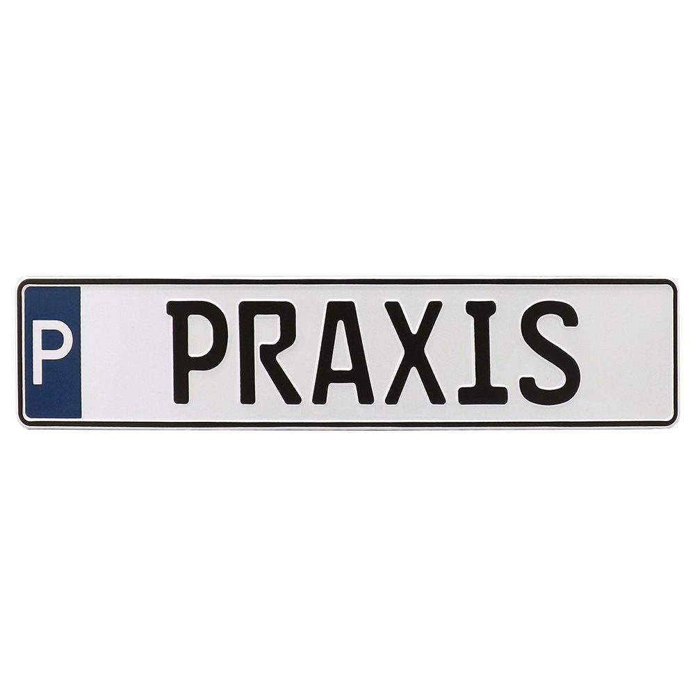 Das hier angebotene Parkplatzschild besteht aus Aluminium und wird mit der Parkplatz-Kennzeichnung "PRAXIS" in Großbuchstaben erhaben geprägt.